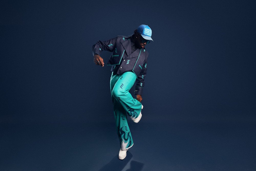 Kesse, best known for his undeniable confidence, sported an unconventional style at the event that caught the eye of other attendees, the paparazzi and even fans back home. He made two fashion statements, first in an ornate piece that people dubbed “Catch of the Night” and later in a bespoke black and mint blue piece designed by First Tribe Africa.